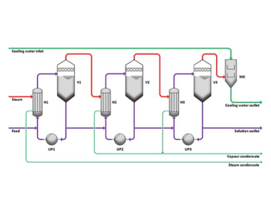 | استهلاك البخار الخام | كجم/ساعة | ~900 عند 3000 كجم/ساعة (≈30% من التأثير الفردي) |